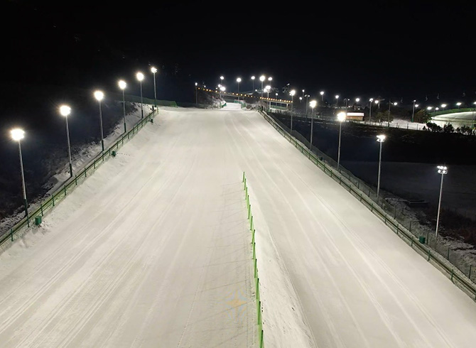 均勻度是評價照明質(zhì)量的重要標(biāo)準(zhǔn)之一。現(xiàn)場按照明設(shè)計燈具準(zhǔn)確定位和瞄準(zhǔn),嚴(yán)格控制燈具的瞄準(zhǔn)角度,為雪道提供亮如白晝的光照的同時,提供良好的照度均勻度并降低陰影,讓人擁有夜間滑雪的更優(yōu)體驗。
